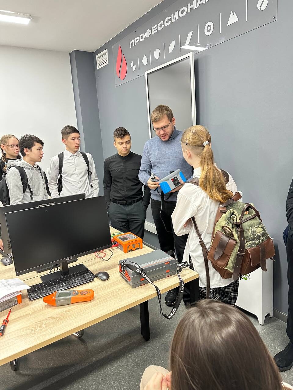 Также в рамках проекта «Билет в будущее» для школьников окружной столицы провели экскурсию по новым лабораториям. Здесь проходят исследования и обучение в области электроэнергетики. Доцент Политехнической школы ЮГУ Александр Шепелев показал школьникам, как используют такие приборы, как тепловизор, мегаомметр и многофункциональные измерители параметров электробезопасности электроустановок.