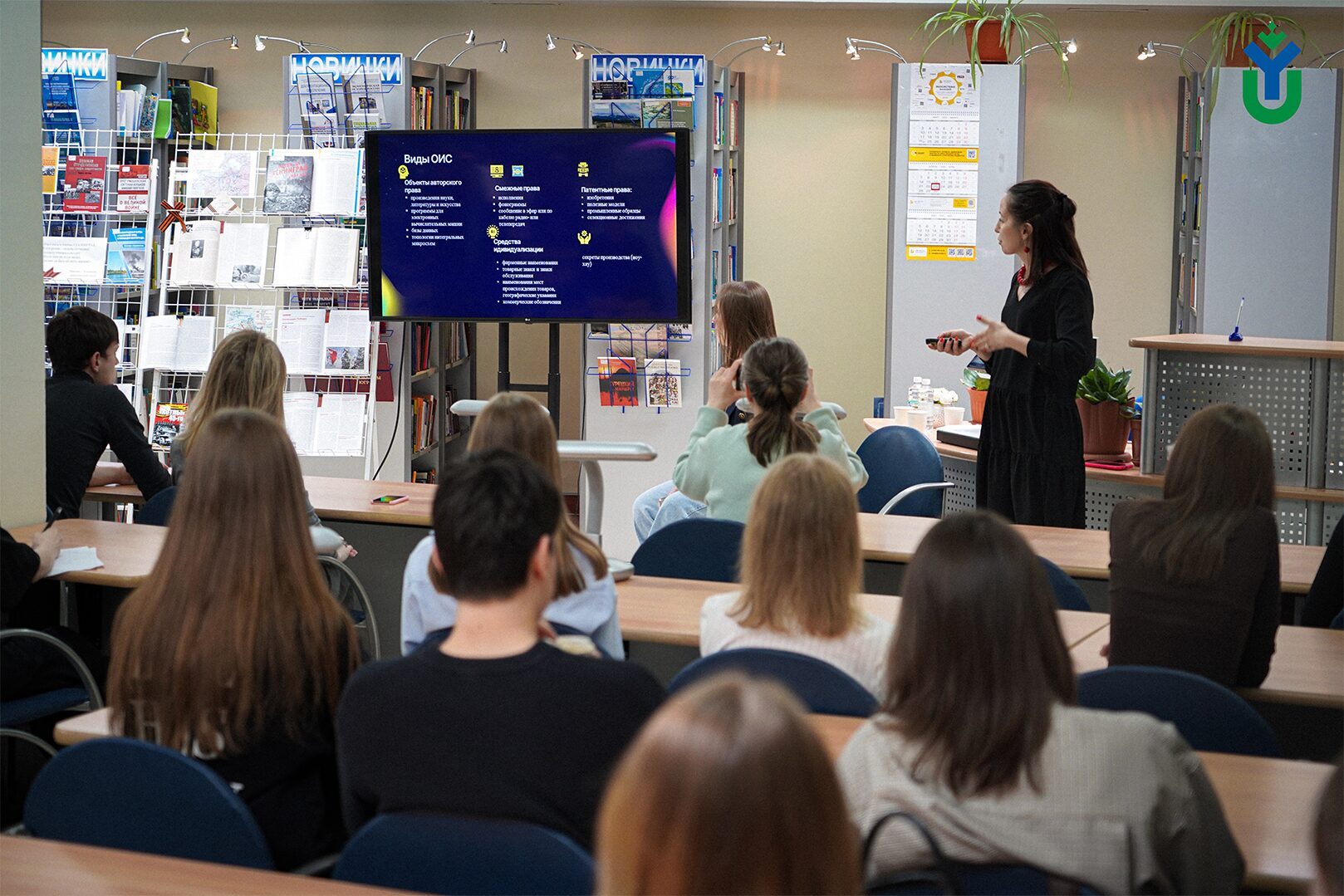 В Научной библиотеке ЮГУ прошла встреча, на которой студентам 1 курса Высшей школы права рассказали о депонировании результатов интеллектуальной собственности. Лекцию провели эксперты Технопарка Югры Лилия Михайлова и Анна Хомякова. Встреча прошла в рамках проекта «Научная среда». Отметим, что на этой неделе, 26 апреля, отмечают Международный день интеллектуальной собственности.