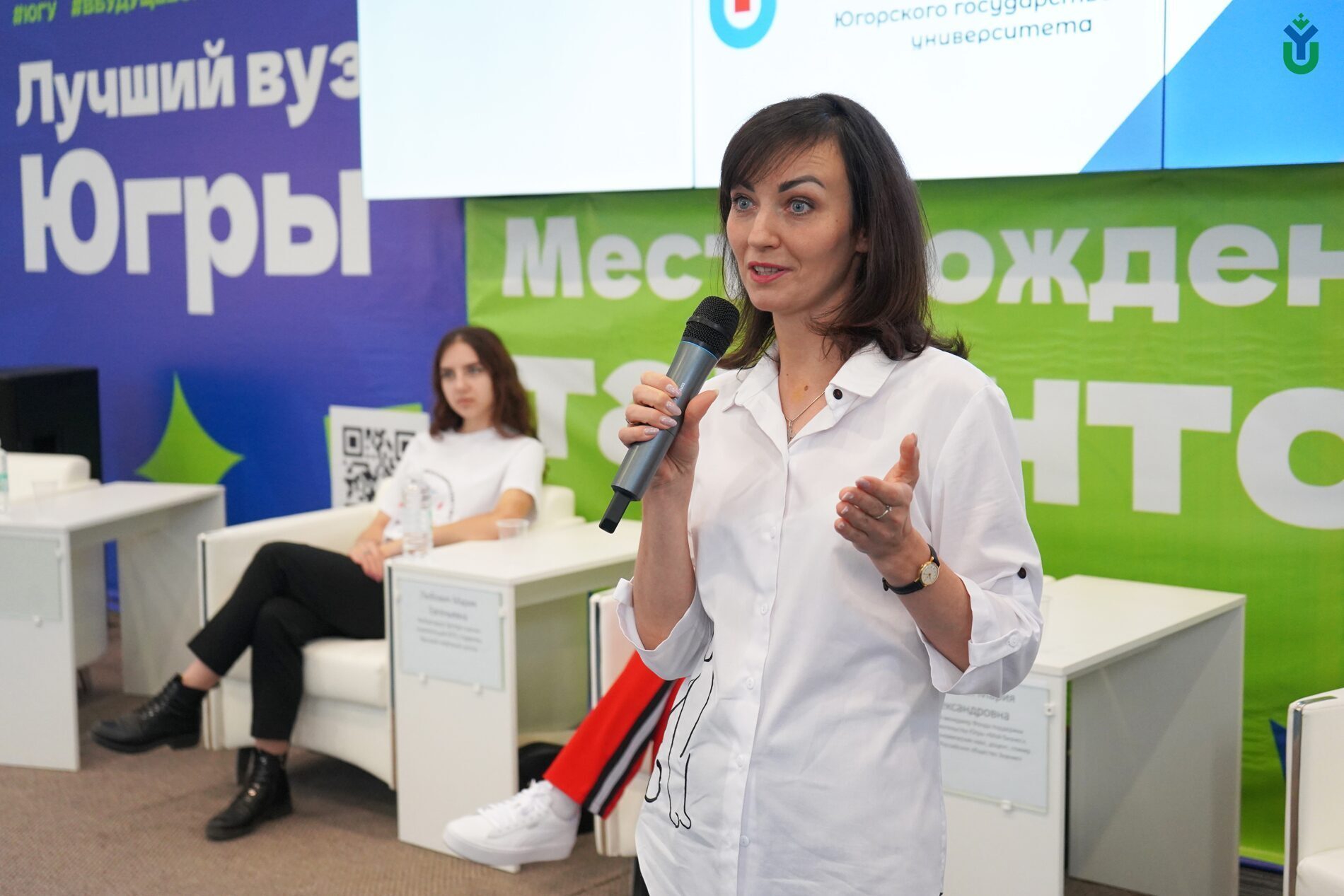 Трек «Говори» представила Марина Быстрова – начальник Управления по связям с общественностью, маркетингу и рекламе ЮГУ и Алина Ефремова-Герлиня – главный специалист Департамента оценки и методологии АНО «Россия – страна возможностей».
