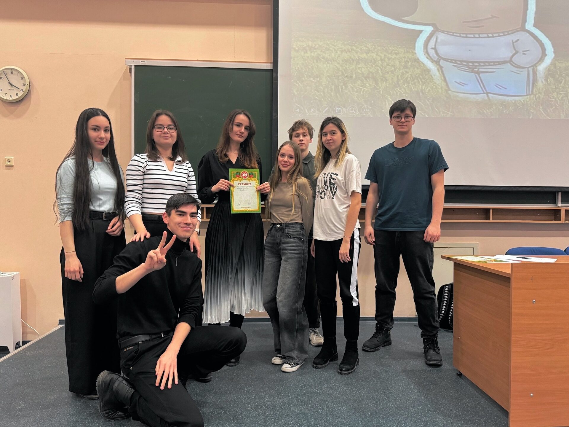 Для викторины команды сформировали случайным образом: каждый участник вытягивал бумажку с номером команды. Знатоки отвечали на такие вопросы, как, например, на какой роман отсылает имя главного героя «Над пропастью во ржи» Холдена Колфилда, назвать самый короткий рассказ Эрнеста Хэмингуэя, какое ФИО выбрал новый человек, созданный профессором Преображенским в повести Михаила Булгакова «Собачье сердце». Студентам также удалось отгадать сленговые выражения по картинкам. Все участники мастер-класса ушли с подарками.