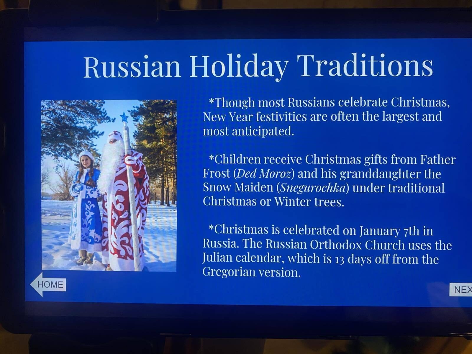 Профессора ЮГУ Ольга Николаевна и Евгений Александрович Науменко помогли организовать в США экспозицию, посвящённую празднованию Нового года. Выставка прошла в Доме-музее генерала Крука в штате Небраска, в рамках которой музейные работники сформировали отдельную секцию «Русский Новый год».