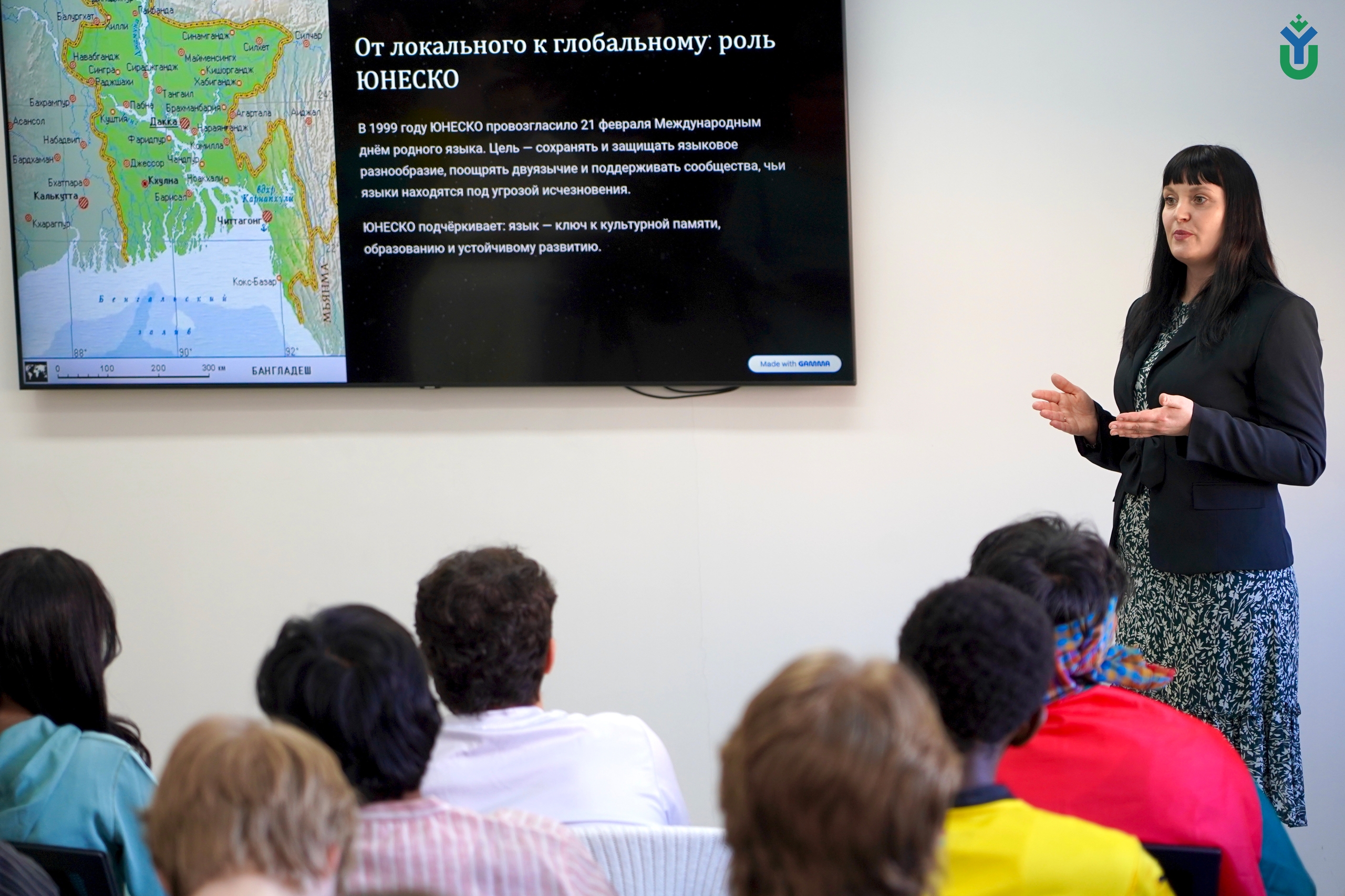 Обучающиеся выступили в роли представителей своей родной культуры. Участники узнали об истории праздника, берущего начало в Бангладеш, и о том, почему сохранение родного языка — это вопрос национальной памяти и идентичности.