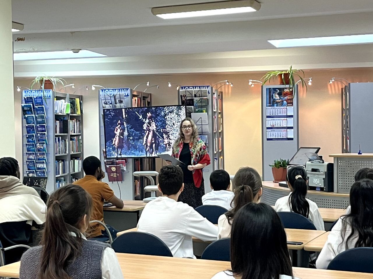 Серия мероприятий началась с погружения ребят в русский фольклор. Для участников – студентов и детей-мигрантов школ г. Ханты-Мансийска №6 и №9 - провели квиз «По следам русских сказок и былин». Им показали видеоролики с фрагментами советских и российских фильмов, они узнали о героях русских сказок, интересные факты о злодеях и богатырях, а также схожих чертах, присущих русским народным сказаниям. Звание лучшего знатока в квизе получила Фатима Шарипова, ученица СОШ №9.
