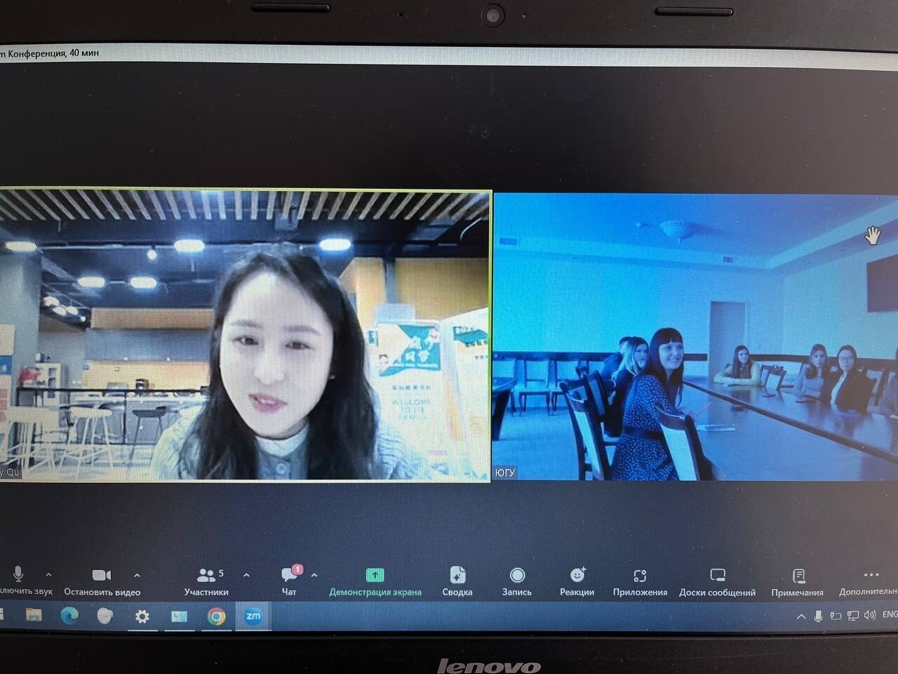 На встрече присутствовала Алевтина Добрынина, студентка Высшей экологической школы ЮГУ, которая уже месяц находится в Циндао и проходит обучение по данной программе. Алевтина поделилась своими впечатлениями об общежитии, кампусе и его инфраструктуре, а также рассказала об организации обучения.