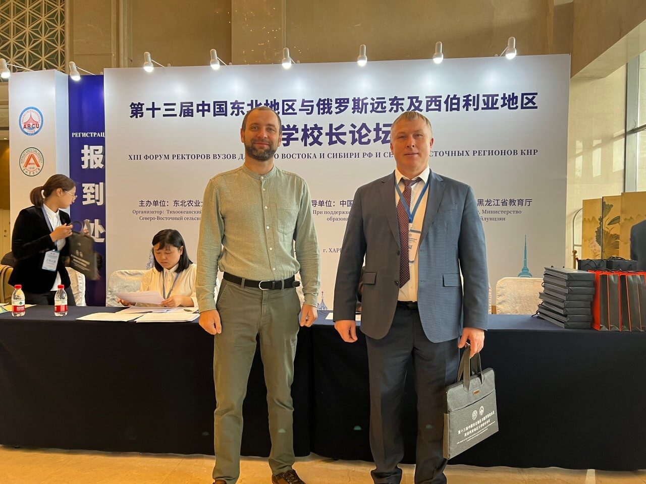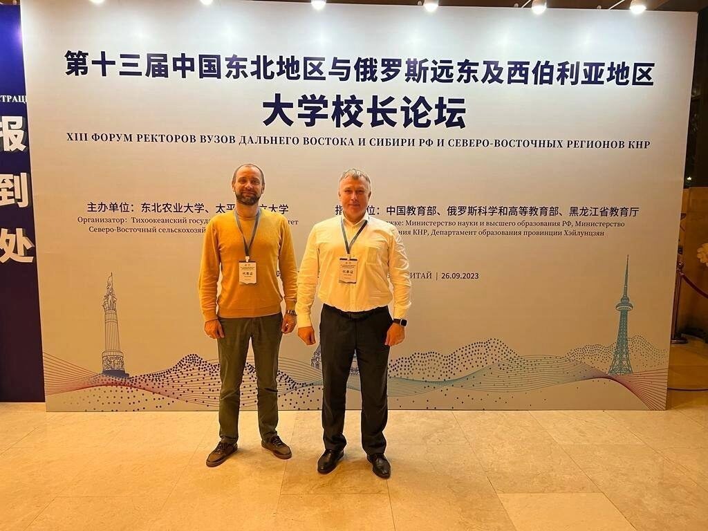 Ректор Югорского государственного университета Роман Кучин и старший научный сотрудник Лаборатории изучения пространственно-временной изменчивости углеродного баланса лесных и болотных экосистем средней тайги Западной Сибири Евгений Заров принимают участие в XIII Форуме ректоров университетов Дальнего Востока и Сибири Российской Федерации и Северо-восточных регионов КНР в г. Харбине.