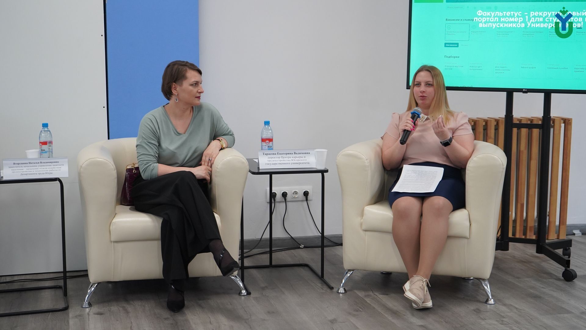«Факультетус», напрямую связывающая студентов и выпускников университетов с работодателями. Проект поддержан Агентством стратегических инициатив и является резидентом Сколково. На платформе у каждого молодого человека имеется возможность создать резюме, выбрать «Свой Университет», найти активные предложения от работодателей по своему направлению подготовки, откликнуться на вакансию и пообщаться с работодателями всего в два клика. ЮГУ также является частью «Факультетуса» и теперь работодатели всей России могут выбрать ЮГУ и стать его кадровым партнером, получая возможность просматривать резюме обучающихся и приглашать их на практику и трудоустройство. Вакансии, предлагаемые работодателями можно собирать в подборки вакансий и публиковать в социальных сетях, причем платформа сама создает подборки, и сама предлагает стилизованный фон для социальных сетей, что сильно упрощает работу по распространению вакансий» – сказала Екатерина Тарасова.