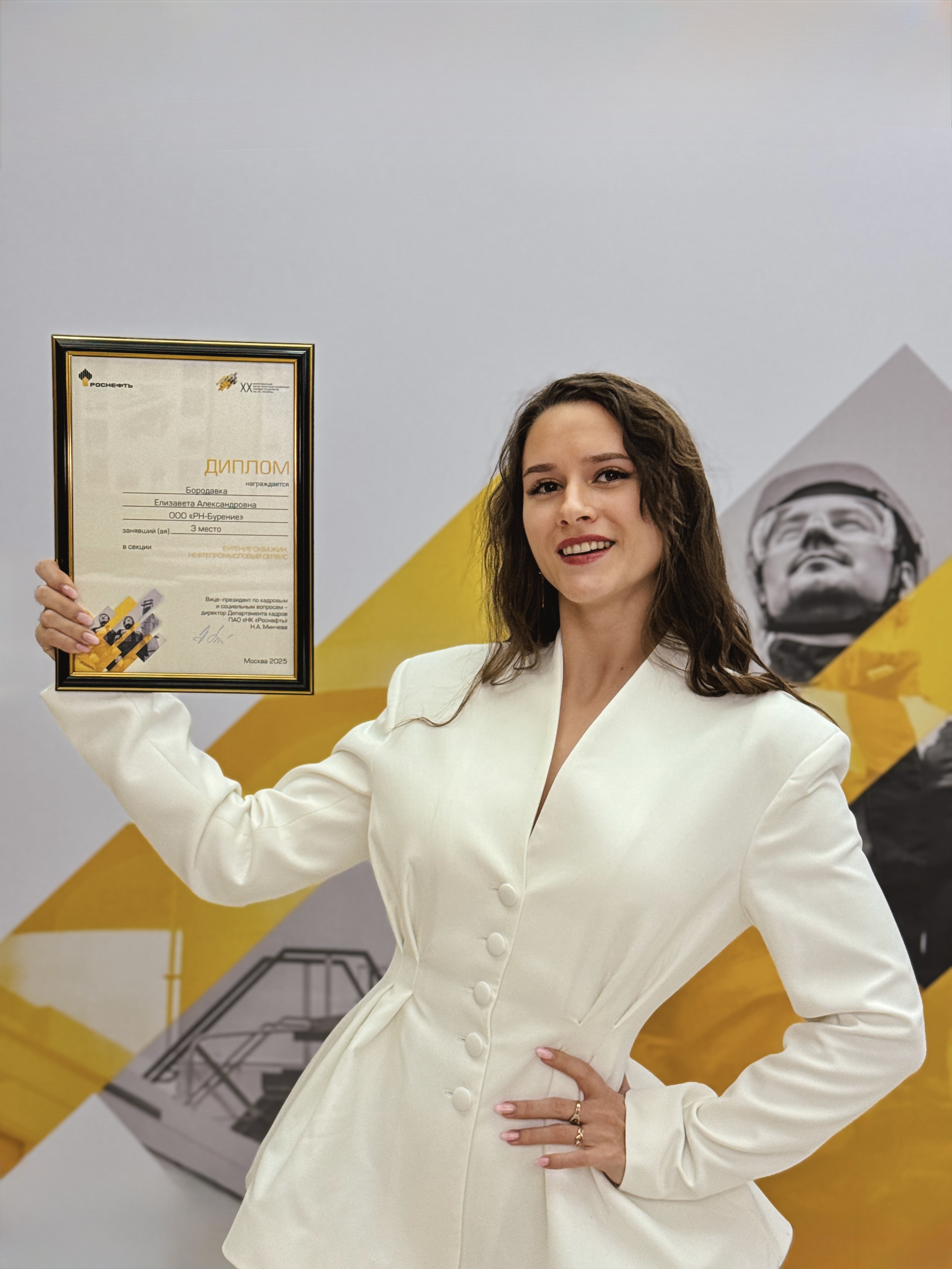 Ещё одним призёром стала геолог Укрупненного нефтепромысла №2 ООО «РН-Пурнефтегаз» Татьяна Иванова. Выпускница ЮГУ направления подготовки «21.05.02 Прикладная геология» 2023 года также заняла 3-е место в секции «Добыча нефти». Татьяна представила на суд жюри доклад «Технология изготовления алюмосиликатных пропантов на основе буровых шламов». Проект предлагает эффективное решение проблемы накопления буровых отходов путем их переработки на востребованную продукцию для нефтедобычи.