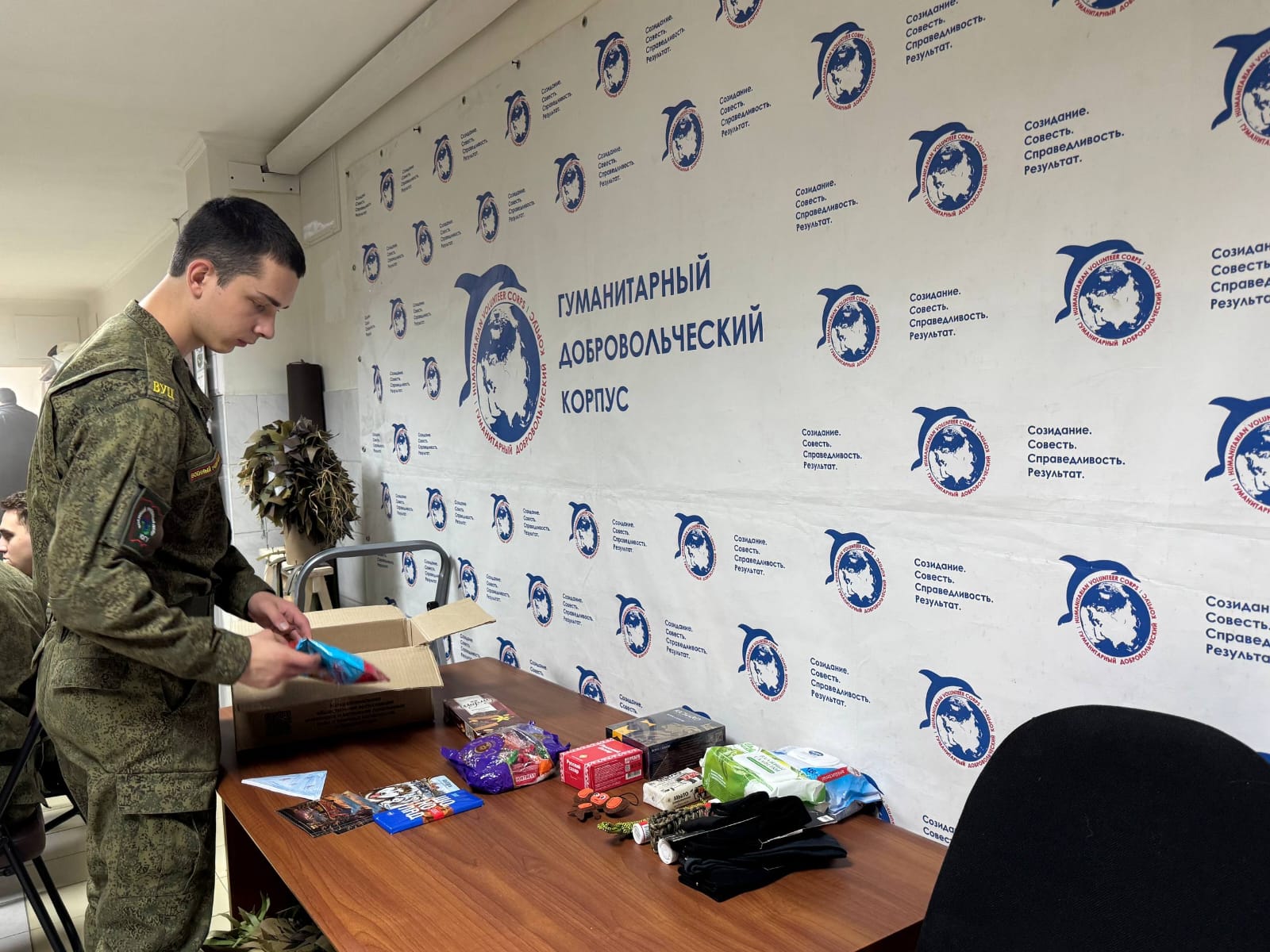Одной из центральных частей мероприятия стало практическое занятие, в рамках которого курсанты смогли своими руками укомплектовать посылку «Солдату».