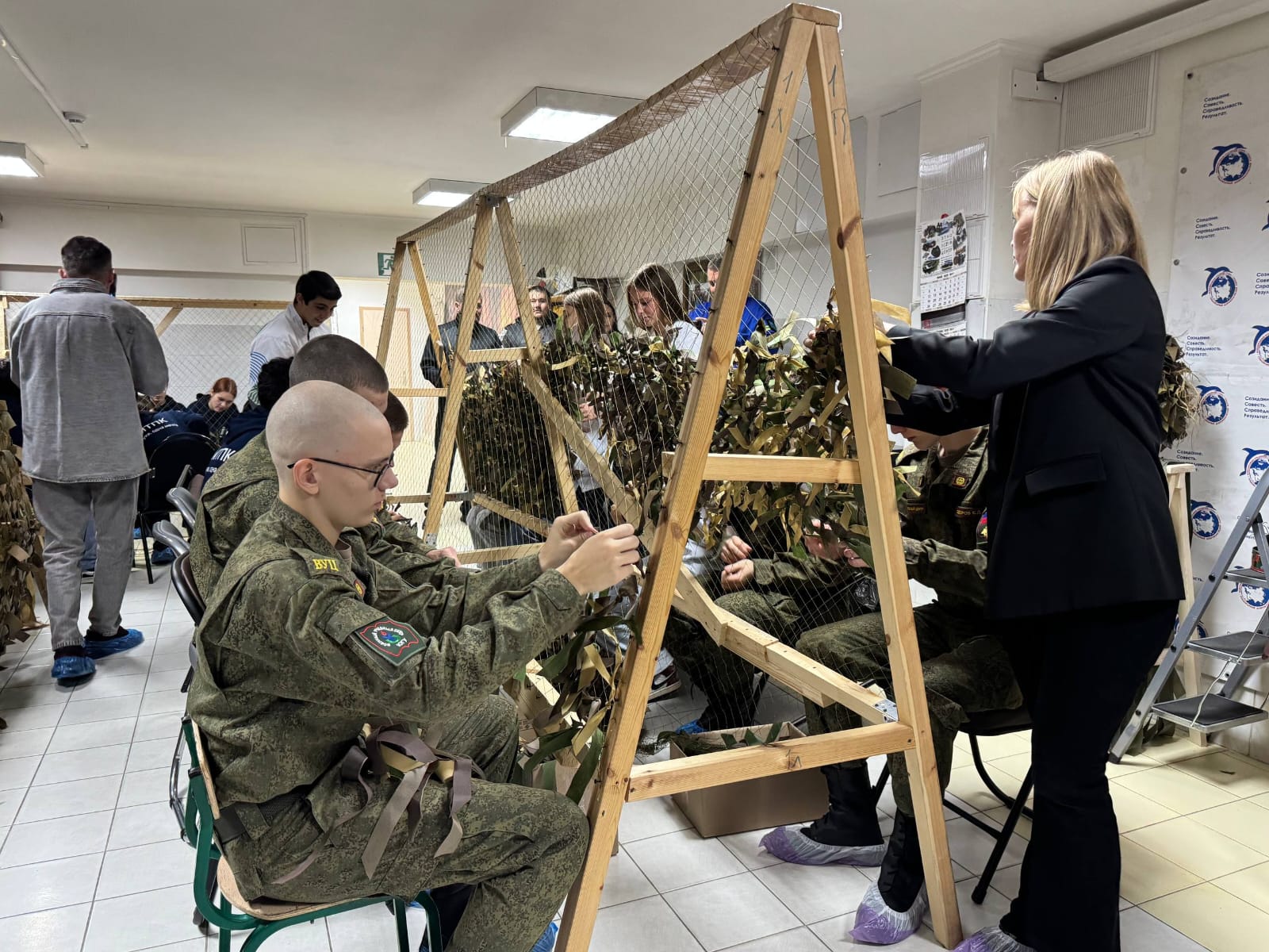 Кроме того, участники встречи сплели маскировочные сети, которые используются для защиты военнослужащих, а также попробовали себя в роли спасателей в условиях задымления, что дало им представление о действиях в экстренных ситуациях и важности подготовки к ним.