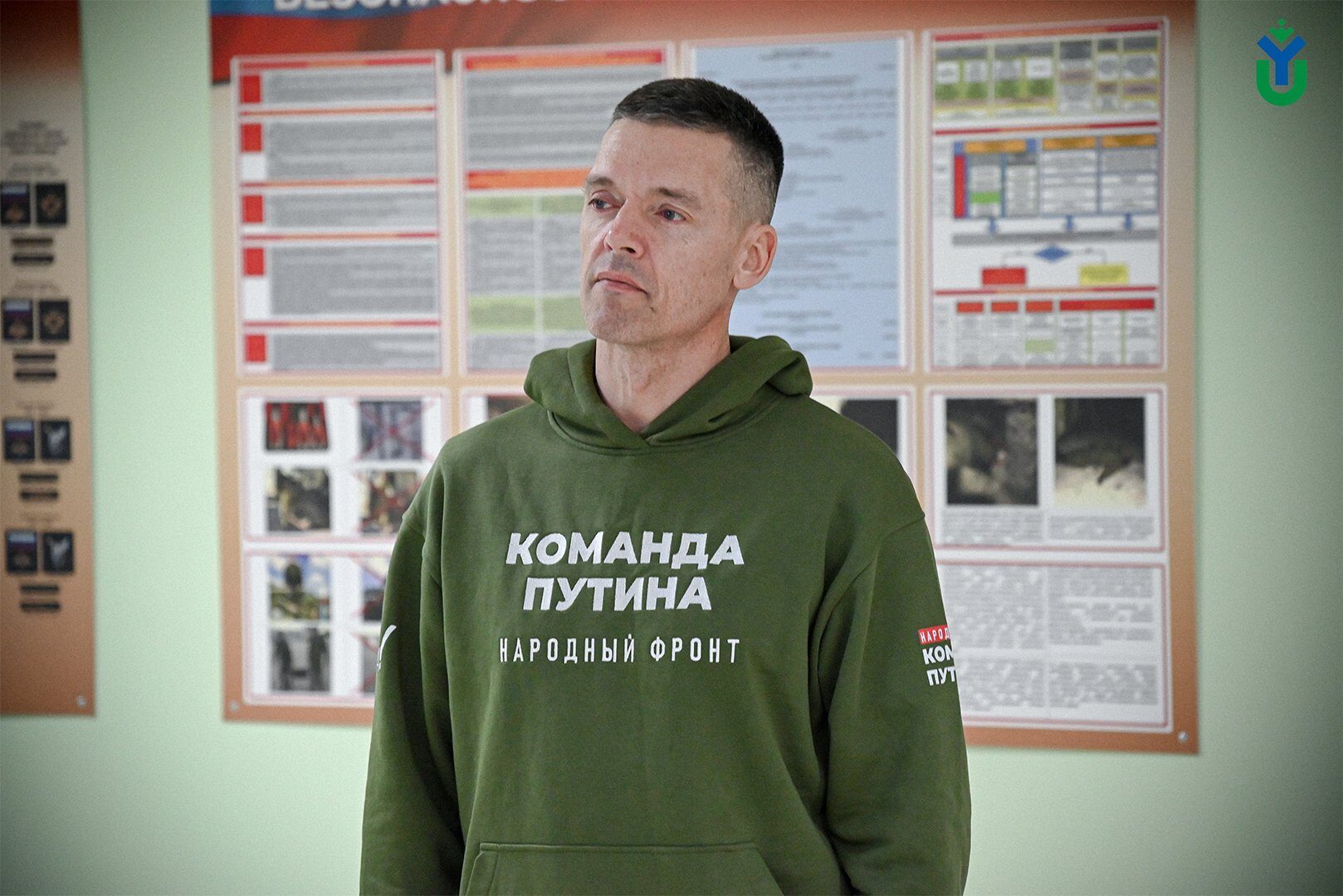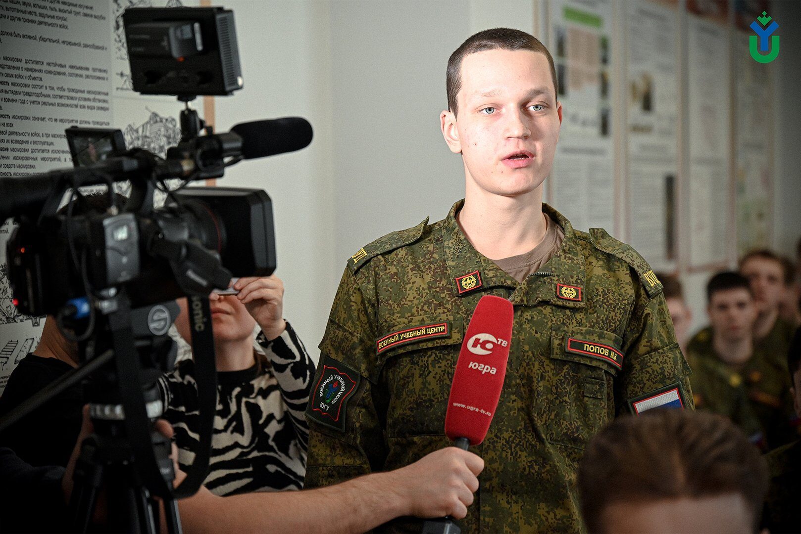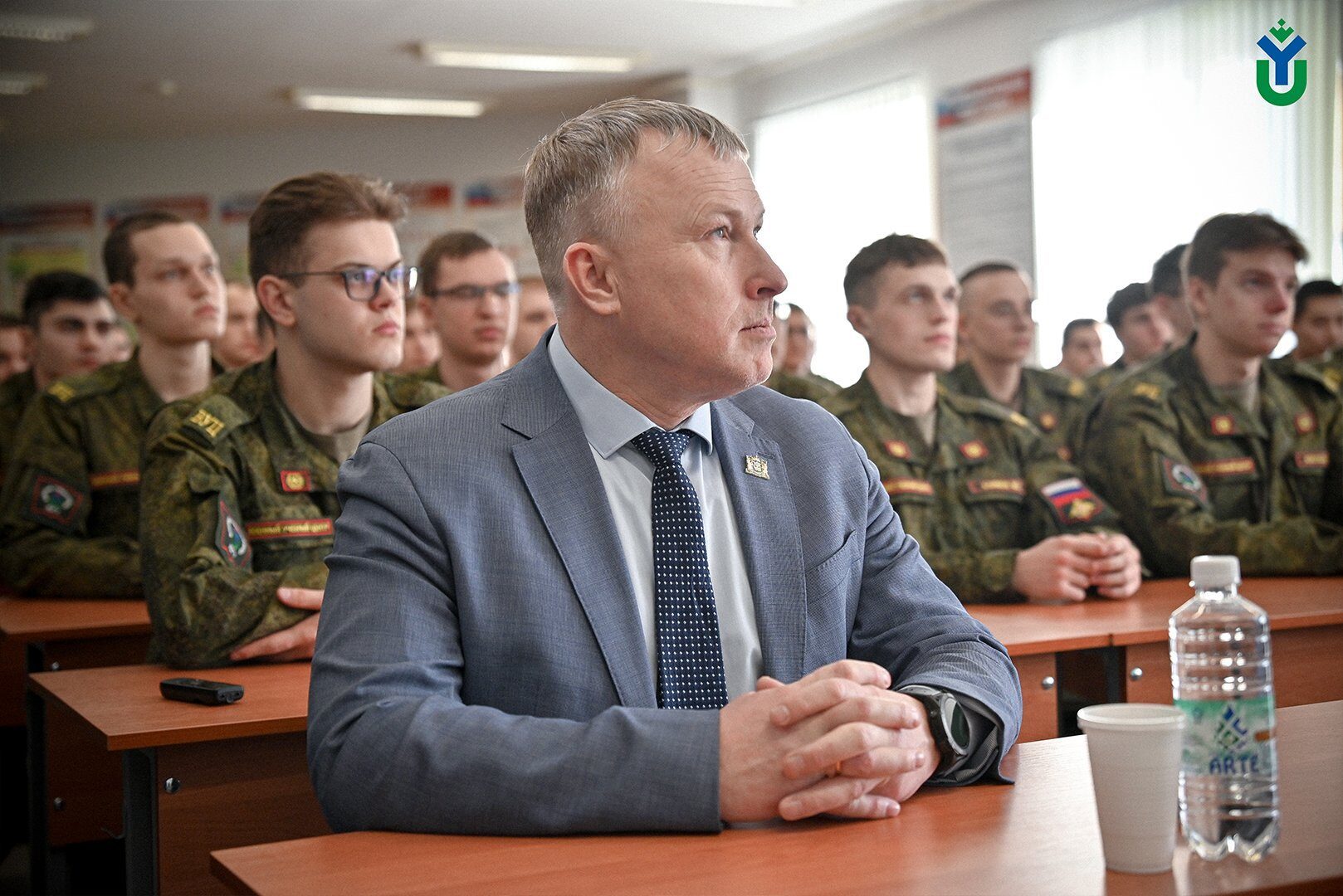 У курсантов была возможность задать вопрос гостю. Его озвучил курсант Максим Попов: «Вы по первому образованию журналист, вы актёр, ваше мастерство в России общепризнано, вы снимались в фильмах, о которых знает вся страна, вы поэт. У людей мысль такая, что у него интеллигентная душа, он тонко чувствует и окопная жизнь не его. Что вы на это скажите?»