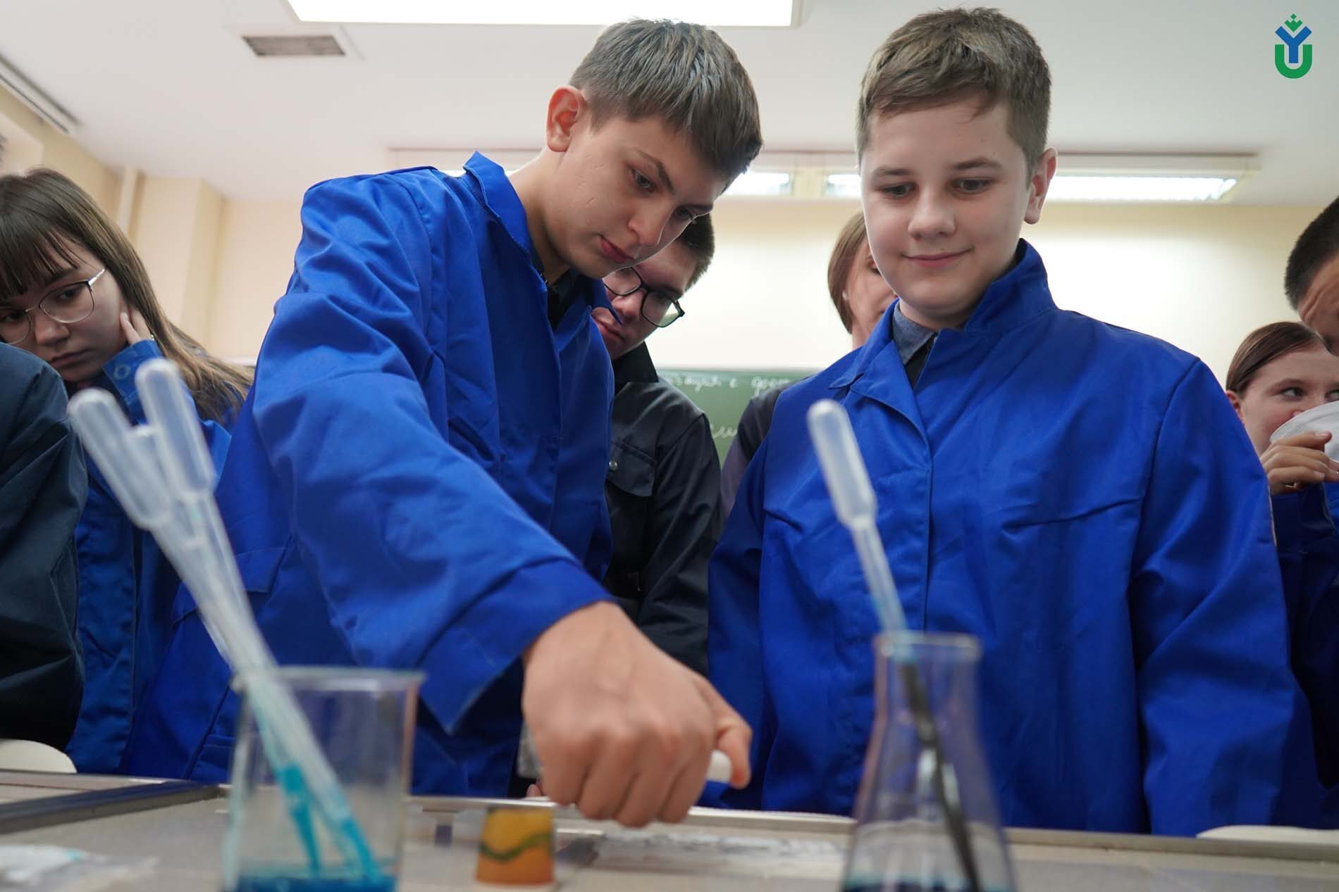 Как из олигомера сделать полимер, школьники узнали в лаборатории общей химии. Здесь учащимся рассказали про полимеризацию и предложили окунуться в мир высокомолекулярной химии.