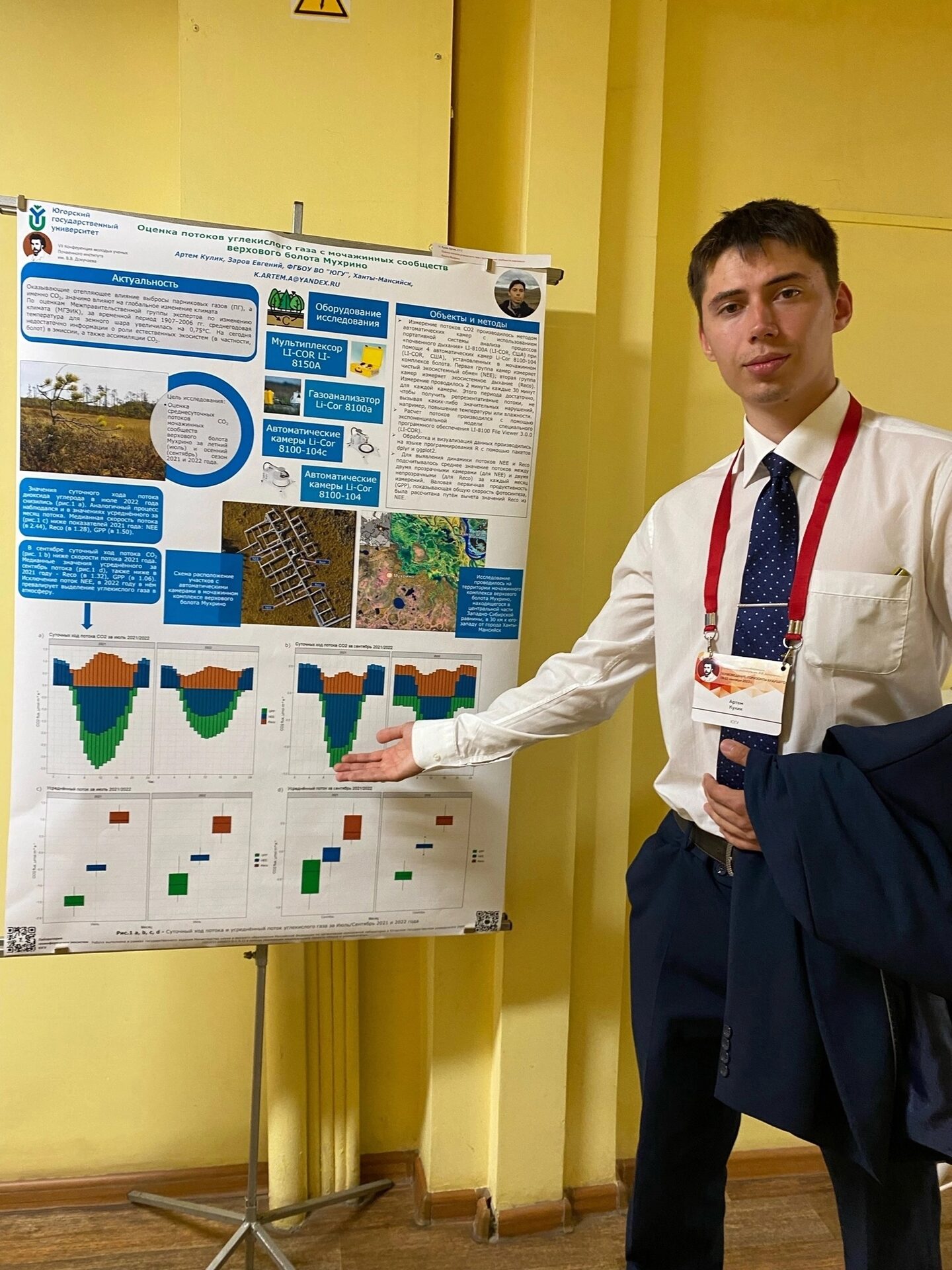 «В нашем исследовании была проведена оценка изменчивости удельной скорости потоков углекислого газа из мочажинного комплекса верхового болота Мухрино за июль и сентябрь 2021-2022 гг. с использованием метода автоматических камер и оборудования, такого, как мультиплексор LI-COR LI-8150A, газоанализатор Li-Cor 8100a, автоматические камеры Li-Cor 8100-104с и Li-Cor 8100-104», - рассказал студент и лаборант Лаборатории геоинформатики экосистем ЮГУ Артём Кулик.