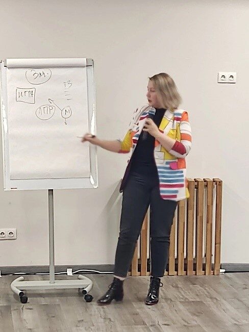Спикер, Старикова Наталья Александровна, Руководитель Центр IT-компетенций Югорского НИИ информационных технологий», Эксперт НТИ, подробно рассказал о этапах, через которые должен пройти проект, и как важен постоянный контроль качества в группе, для чего в этой методике предусмотрены ежедневные "планерки".